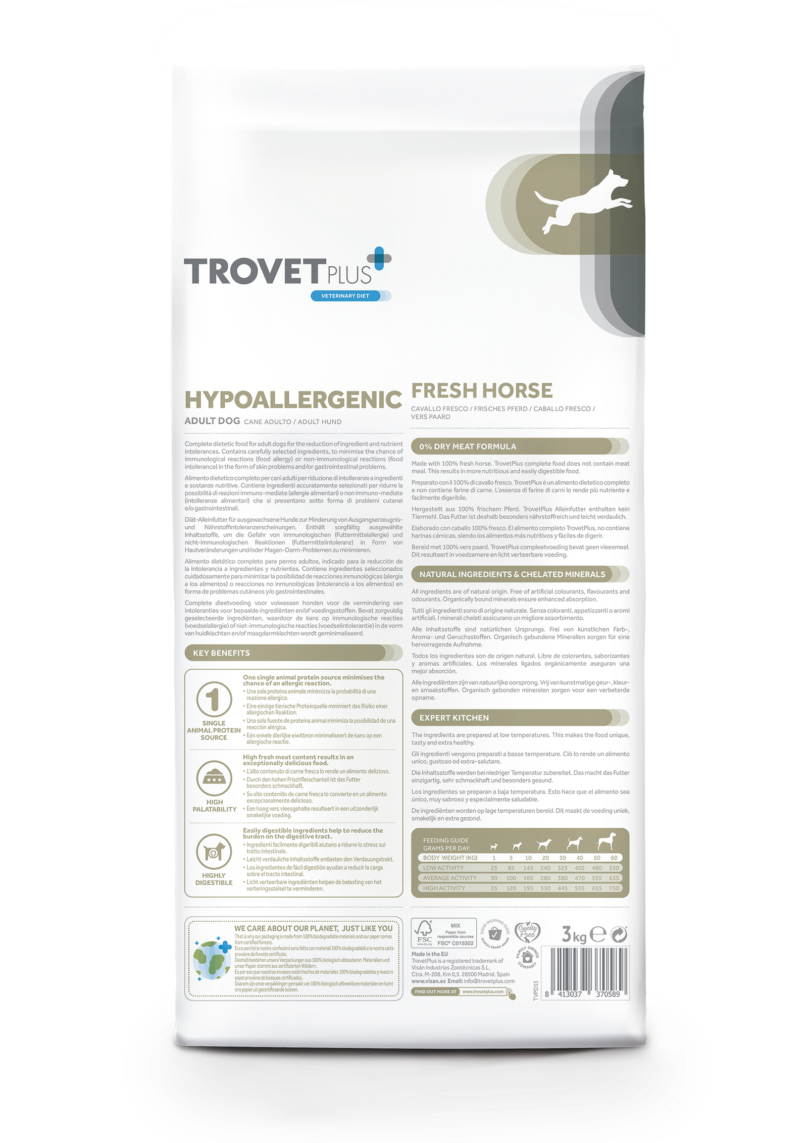 Trovet has built its reputation by offering scientifically formulated diets developed alongside veterinarians and animal nutrition experts. The Trovet Plus Hypoallergenic Horse Veterinary Diet is trusted worldwide for dogs who require specialized care due to food allergies or intolerances.